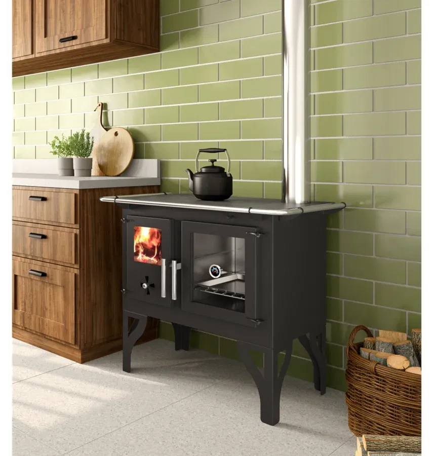 La Cocina a Leña Barcelona F700F une tradición y tecnología en un verdadero 3 en 1: cocina, horno y calefactor. Con sistema de doble combustión, calienta ambientes de hasta 210 m³ con alto rendimiento térmico, bajo consumo de leña y baja emisión de contaminantes. Versátil y funcional, permite cocinar en la plancha de hierro fundido, hornear en el horno interno de 31 litros y calentar el ambiente al mismo tiempo. Duradera, práctica y completa, es la elección ideal para quienes buscan confort térmico sin renunciar a la eficiencia y a la tradición del fuego a leña.
