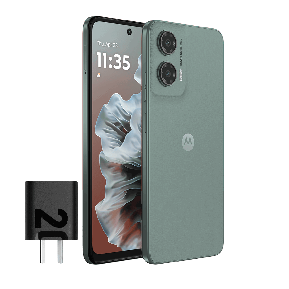 Disfrutá de un diseño sofisticado que fusiona elegancia y practicidad. El moto g35 5G es fácil de usar y sostener con una mano por su diseño ultradelgado y liviano. Elegí un elegante acabado mate en color Negro o un toque de lujo con el acabado de cuero vegano en color Naranja, Verde o Gris. Sea cual sea el que elijas, siempre hay un teléfono que se adapta a vos.