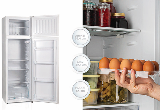 - Capacidad total de 239 Lts distribuidos entre freezer (154 Lts) y heladera (50 Lts)
