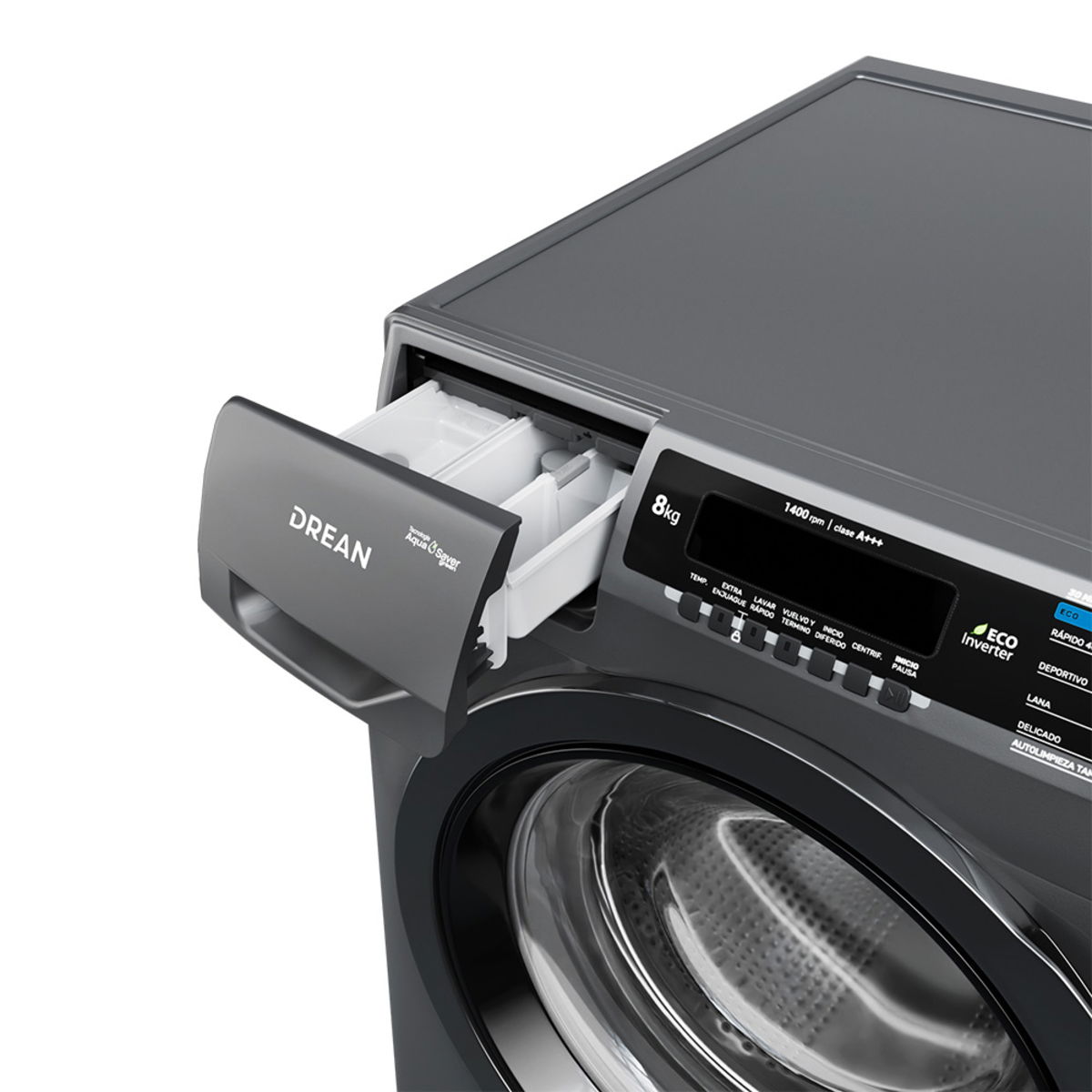Lavarropas de carga frontal con tecnología Ecoinverter. Su capacidad de lavado es de 8 Kg y su velocidad de centrifugado es regulable hasta 1400 RPM. Color gris. Eficiencia A+++. Lavado europeo. 15 programas de lavado. Display LED y perilla. Carga autoadaptativa, función autobalance y bloqueo de puerta. Incluye inicio diferido y extra enjuague. Tambor de acero inoxidable. Cúpula de vidrio. Sus programas incluyen lavado rápido 30’, ECO, hipoalergénico. Opción vuelvo y termino. Origen Argentina.